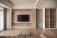 從玄觀走進客廳,一片金屬黑玻璃的屏風,劃分客廳與玄關的界線,設計師表示由於有風水考量,故採用造型屏風作為「擋煞」及「區隔」的概念。木紋背牆勾勒出質樸的語彙,設計師利用「栓木牆面」和「柚木地板」的淺木色搭配,引進大量自然光,化繁為簡地去表達空間的表情,不刻意裝上過多的燈具,大方明亮、舒適自然的氣氛,是設計師想傳達的氛圍。設師為發揮環保原則,採用開放式的空間規劃,連結沙發背牆的展示櫃和書房,因此書房的拉門,是採用玻璃門片互通兩個空間,拉長空間的深度。開放式的動線設計,可以減少空調的用電量,成為都市水泥叢林中的森林系好宅。
