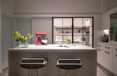 ▲屋主大女兒從法國留學回來,在法國就學期間學習廚藝,法式甜點、麵包,常常都是烹飪輕鬆上手,為此就為女兒準備一區備餐區,一旁的櫥櫃分門別類下廚工具組。